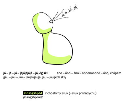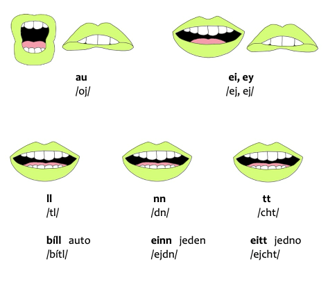 Výklad islandskej abecedy sa nachádza na konci učebnice, kde sa kladie dôraz na sluch ako zmyslový vnem. V tejto časti je možné si vypočuť zvukové nahrávky jednotlivých písmen alebo dokonca si prečítať aj texty piesní islandskej populárnej hudby so slovenským prekladom a odkazom na YouTube-kanál interpreta. Aj keď možno v tradičných jazykových učebniciach nebýva abeceda s fonetickým prepisom na ich konci, v tejto učebnici sa táto informácia nachádza práve tam. Pri takomto trochu netradičnom prístupe vzniká u učiacich sa zároveň priestor na zníženie obáv z nesprávnej výslovnosti jednotlivých hlások, ktoré sú v tradičných učebniciach uvedené práve na začiatku a bez kontextu. Keďže jednoduchý prepis výslovnosti všetkých slov sa v tejto učebnici nachádza pri väčšine jej príkladov, učiaci sa sa týmto spôsobom môže postupne zoznámiť s výslovnosťou islandského jazyka a v kontexte.