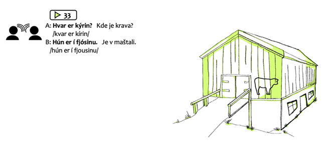 V učebnici sú podporované všetky štyri jazykové zručnosti. Deje sa to prostredníctvom dialógov, ktoré možno čítať aj počúvať, ale aj ďalších doplnkových cvičení, v ktorých učiaci sa odpovedajú na úlohy buď písomne, alebo zopakovaním nahlas. Ako príklad možno uviesť hovorenie pri nádychu, ktoré sa bežne používa v islandčine, a o ktorom iné jazykové učebnice islandčiny skoro vôbec nehovoria. Tento spôsob hovorenia je znázornený obrázkom osoby, ktorá rozpráva pri nádychu. Učiaci sa môžu pokúsiť tento príklad napodobniť.
