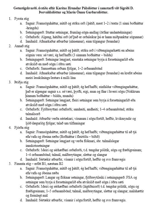 Gísli Hvanndal Ólafsson (2015–2016). Grammar and linguistic structures at Level A1 of Icelandic [meistararitgerð]. Vrije háskóli.